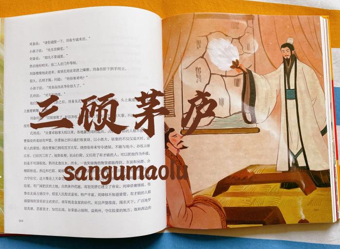 翻开里面的诸葛亮篇章,讲给儿子听,他听得美滋滋,非常入迷。