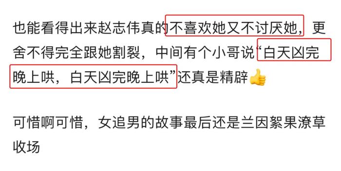 但是呢,伴随争议一起增长的还有热度。她当年与《一年级》中赵志伟的那段闹的并不太愉快的感情,也再次被吃瓜群众拉出来讨论。