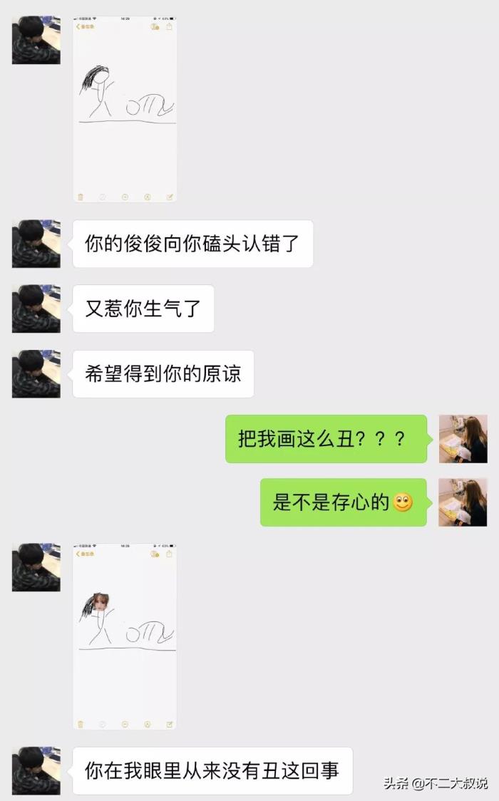 “他总会第一时间就哄我,如果不在身边就微信画画,在身边的话就立马抱着我不放开,直到我原谅为止。”