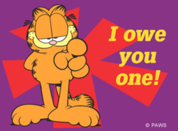 Thanks for the advice. I owe you one.谢谢你的建议,我欠你一次。