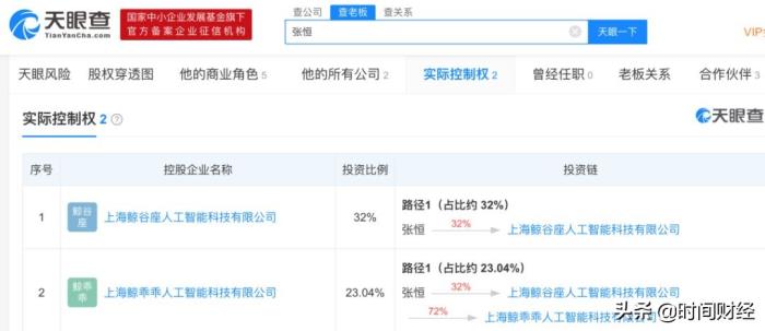 张恒实际控制的公司仅有两家,而这也是郑爽和张恒合开的两家公司。一家为上海鲸谷座人工智能科技有限公司(下称“鲸谷座”),另一家为两人间接实控的上海鲸乖乖人工智能科技有限公司(下称“鲸乖乖”)。