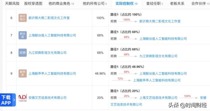 时间财经查阅天眼查发现,郑爽旗下公司的注册资本超过1000万元的有鲸谷座、鲸乖乖、九江郑爽影视文化有限公司;注册资本为500万元及以上的有上海艾艺信息技术有限公司(下称“上海艾艺”)、安徽艾艺信息技术有限公司。