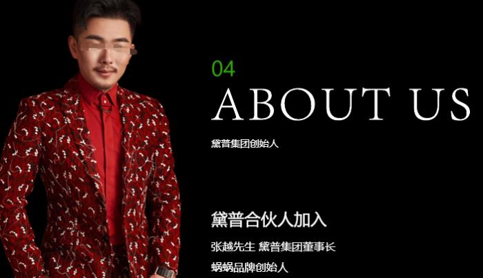 清扬君发现,不管是在蜗蜗官网还是其他任何介绍到张越的地方,都会提到“张越,黛普集团董事长”。可企查查信息显示,不论是黛普贸易还是蜗蜗公司,以及其他的关联公司,都是有限责任公司,而并非集团公司。