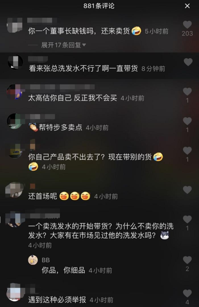 “一个卖洗发水的开始带货,为什么不卖你的洗发水?大家有在市场见过他的洗发水吗?”、