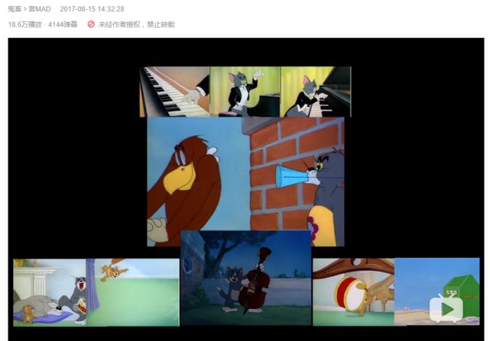 “鬼畜”一词在B站最初指日本的音MAD,即用视频素材中的声音演奏出所选BGM的视频。如用经典动漫《猫和老鼠》中汤姆弹钢琴、被锤子打到头、在天空飞行等音效演奏流行歌曲,重点是对音频的二次创作。