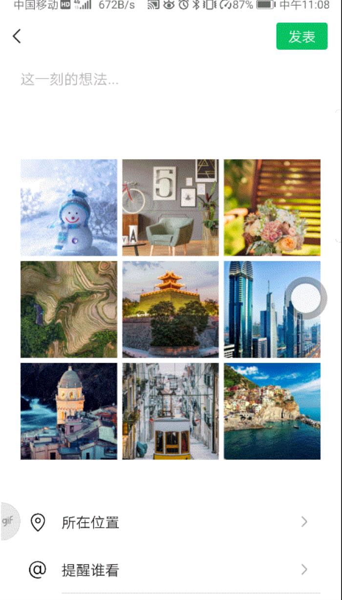 另外,我们还可以进行图片顺序的切换,在发表的时候,我们可以随意拖动任意一张图片,然后放到我们想要的位置,这样就会有非常好看的九宫格效果啦。
