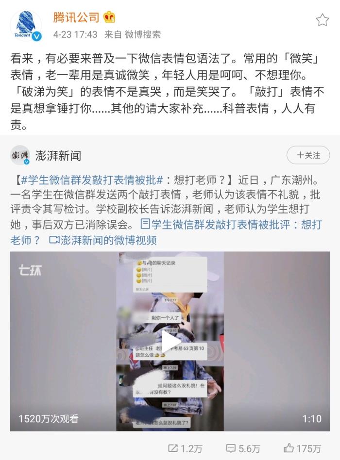 由于社会上对微信表情包不理解的呼声越来越高,腾讯官方终于出面解释,腾讯官方发微博称,“破涕为笑”的含义是笑哭,敲打表情的含义是善意的打情骂俏,但至于最常用的微笑表情,腾讯公司则没有出面澄清,到底是表示“呵呵,不想理你”,还是表示善意的微笑,现在仍然在争论中。