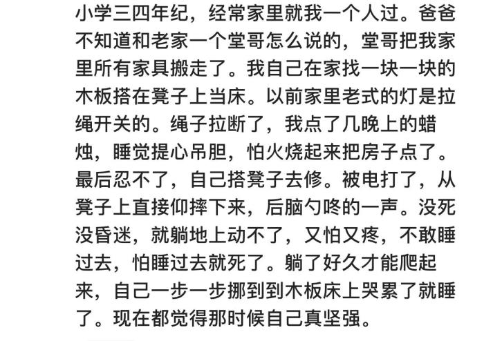 最心酸的莫过于因为借给男朋友400块钱,被自己亲妈狂扇耳光几十下,脸都肿的特别厉害,大年初五晚上九点多把我的衣服全部扔出去让我滚的时候,现在想想真的特别难过,控制不住我的眼泪