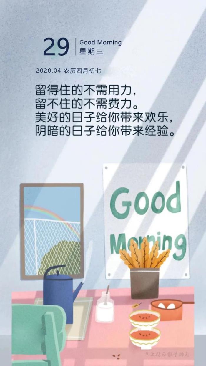 美好的日子给你带来欢乐,阴暗的日子给你带来经验。早安,周三!