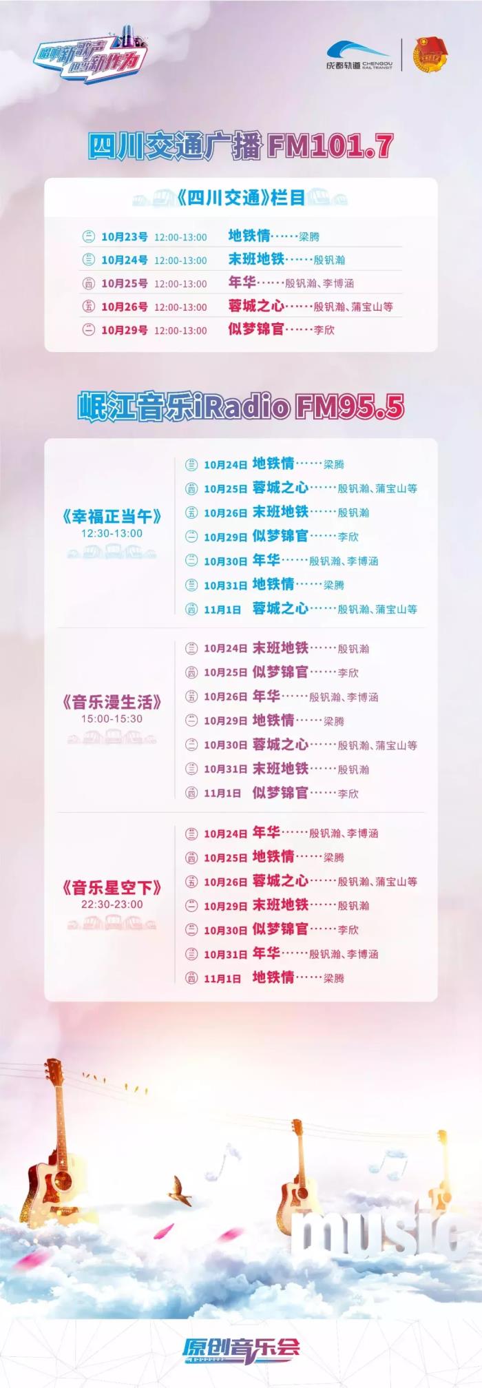 《末班地铁》及其他原创歌曲,已于近日在四川交通广播和岷江音乐电台陆续播放,欢迎大家收听哦!