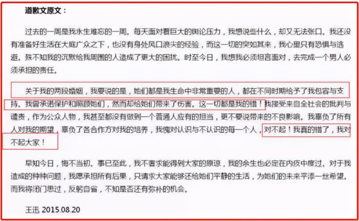 避无可避的王迅,只好匆匆发表了认错声明,试图挽回形象。