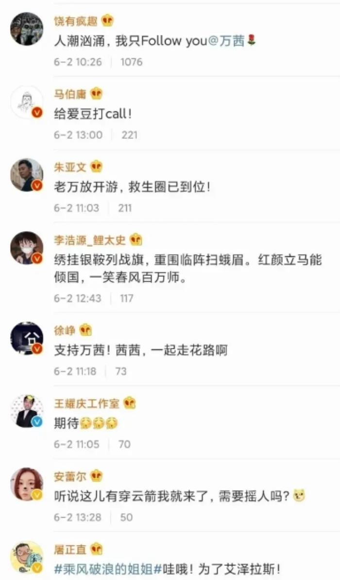 吸引了娱乐圈一半的“男神”来应援,粉丝戏称:“我的男人们在万茜的微博下面集合了!”