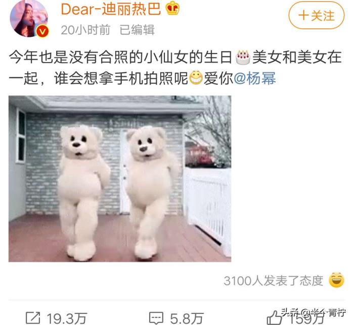 但是随后,有网友则在评论区提醒,这个表情包是蔡徐坤的黑图,而迪丽热巴很快就重新编辑了微博,换了一张两只熊在跳舞的动图,替换了蔡徐坤的黑图。