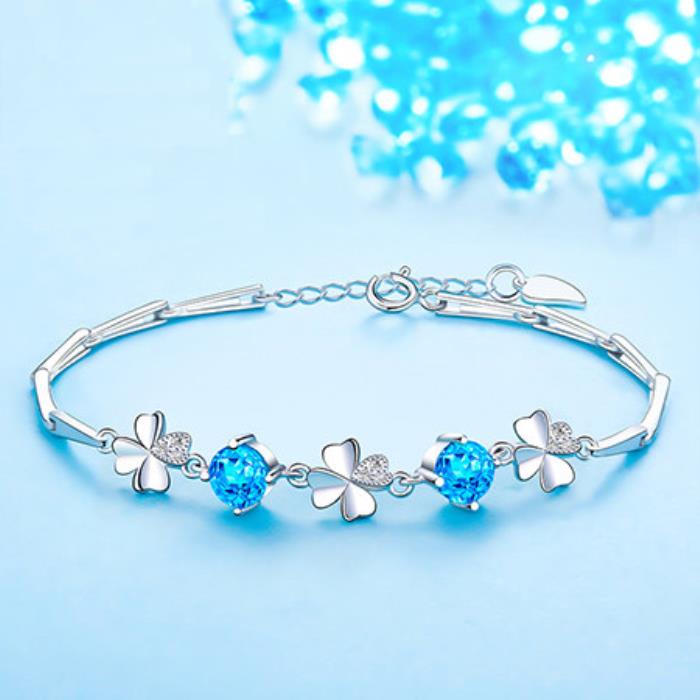 手链在女生喜欢的礼物中高居榜首,手链能代表很多的含义,不管什么关系的女生都能赠送。这条四叶草手链搭配蓝色的水晶,看一眼就让人有一种“怦然心动”的感觉,送给女生寓意不错,让女生感动于你的用心挑选。