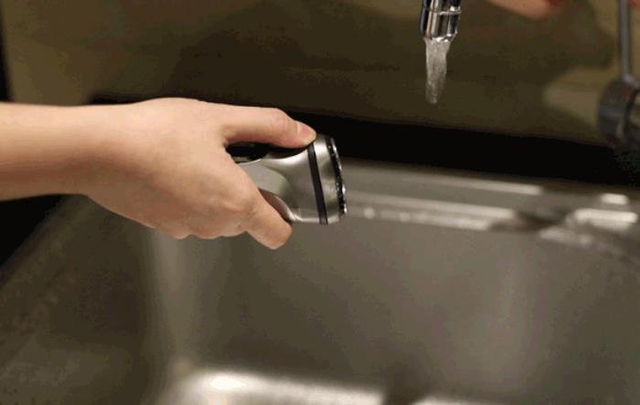 刮完胡子之后,不需要拆卸,就可以放到水龙头上面清洗。
