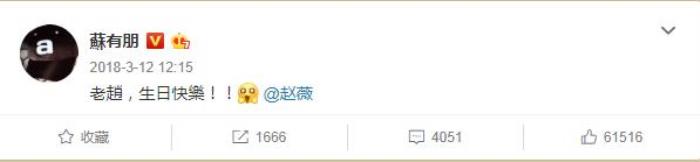 3月12号是赵薇43岁的生日,苏有朋在凌晨的时候特地发布微博,祝多年老友赵薇生日快乐。