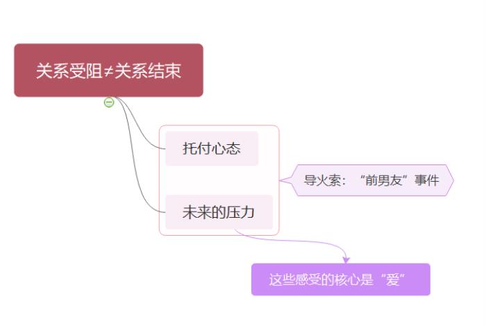 他们的矛盾在于无法平衡两个人的压力和需求,再加上前男友事件,让两个人把藏在心里的情绪一股脑地倾泻了出来,在极端情绪之下,提出了分手。
