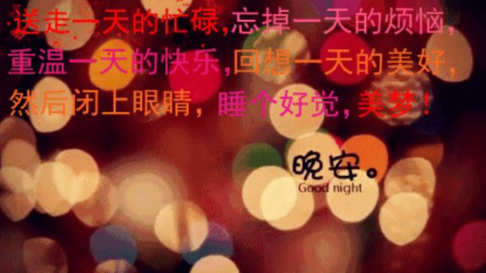 轻轻的问候,赶走你的烦恼;柔柔的关怀,散去你的困恼;甜甜的嘱咐,吹跑你的疲劳;美美的祝福,送去美梦伴绕。晚安!