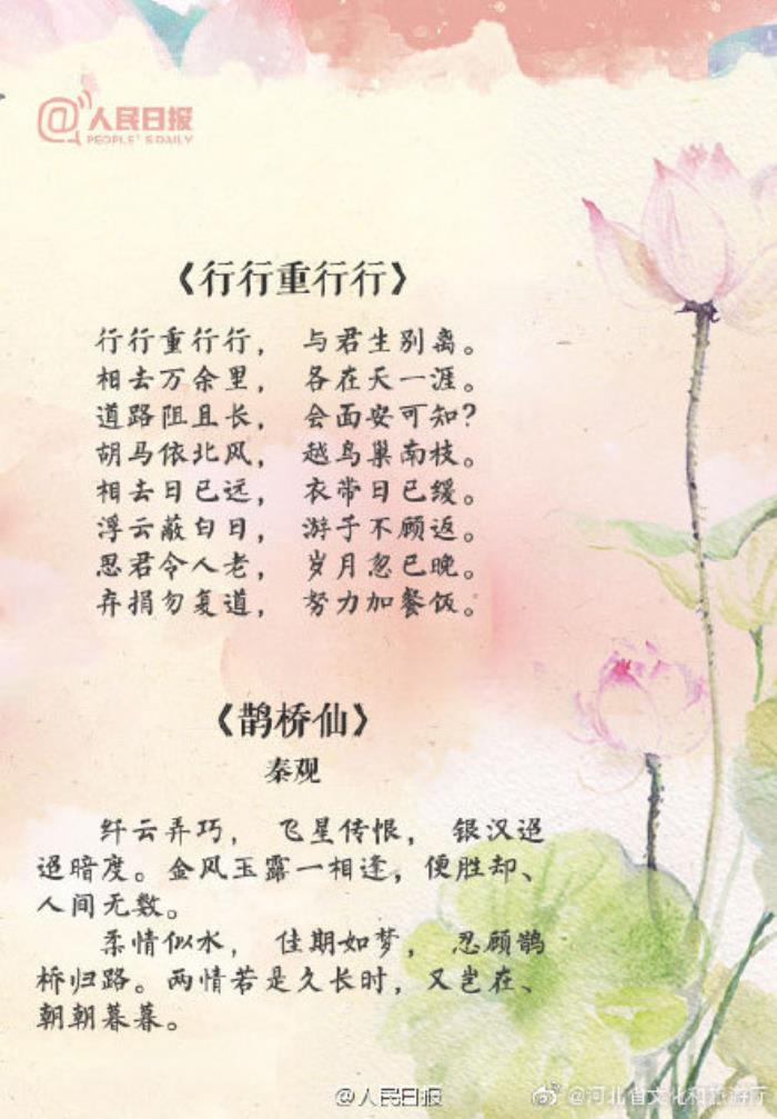 文化广角 【明日七夕!送你14首最美的古典爱情诗词】“只愿君心似我心,定不负相思意”“两情若是久长时,又岂在、朝朝暮暮”……明天就是七夕节了,你打算怎么过?这14首描写爱情的诗词,你最喜欢哪一句?七夕那天的状态 (人民日报)
