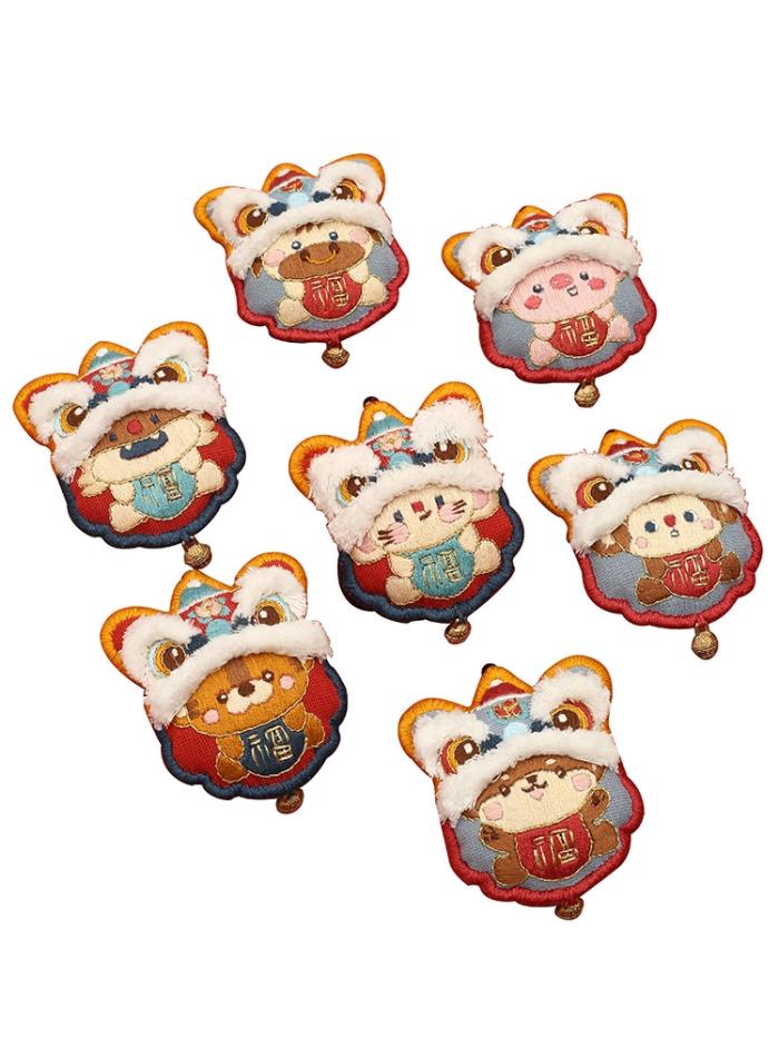 十二生肖主题刺绣手工平安福,都带上了可爱的醒狮头套哦00