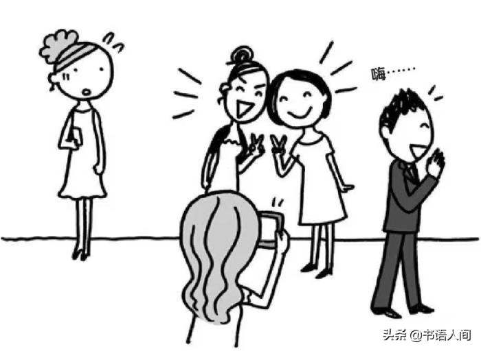主动寻找其他落单的人,然后以「同是天下沦落人」的相互抱怨打开话题,如,「周围都是不认识的人,挺不自在的呢」。
