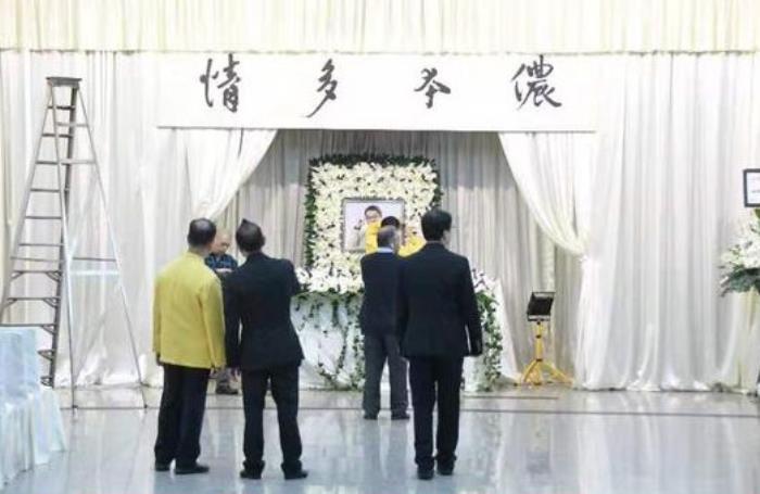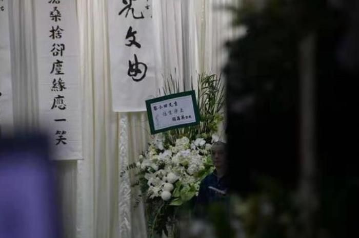 而黎小田前妻关菊英的花牌放在显眼位置,生前红颜知己拍档薛家燕的花牌写有“流行经典 来生再续”并以“LOVE”署名。