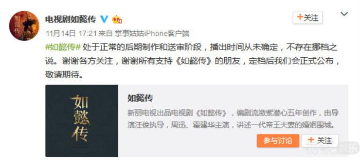 可是昨天晚上的如懿传一点动静都没有,今天就有爆料称又双叒延播,原因是网络平台和电视平台究竟播多少集这个问题没谈拢。