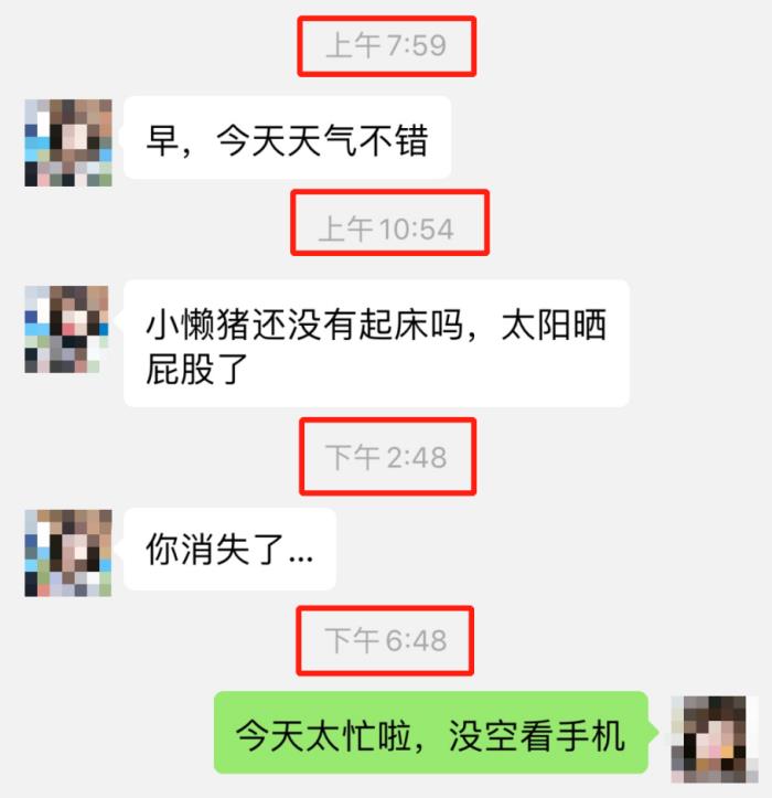 人家从早上七点给你发消息,到了下午七点你才敷衍的回复了一句:"今天没空看手机",姑娘,欲擒故纵也不是这样玩的呀,找理由也要走心啊。