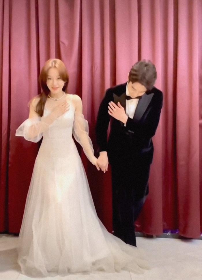 视频中,秦岚身穿白色轻纱长裙,与小7岁的刘以豪如同偶像剧一般甜蜜转圈。两人默契十足,牵手对着镜头鞠躬行礼,看上去很是甜蜜。