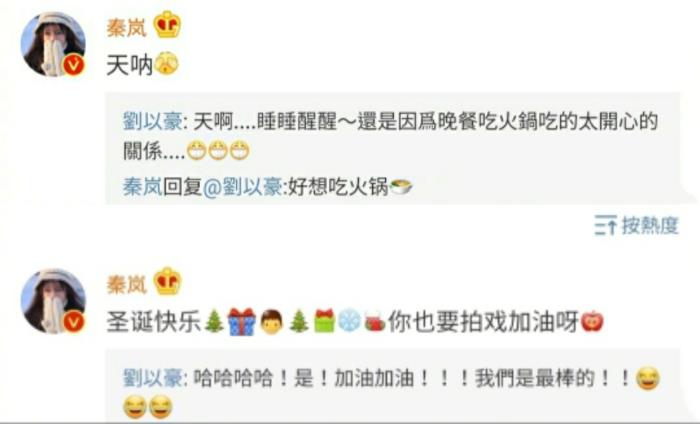秦岚与刘以豪正在参加某档综艺,两人组成了cp,经常甜蜜互动。在社交平台也时常互相留言,言语之中默契十足,让网友纷纷猜测恋情是真。