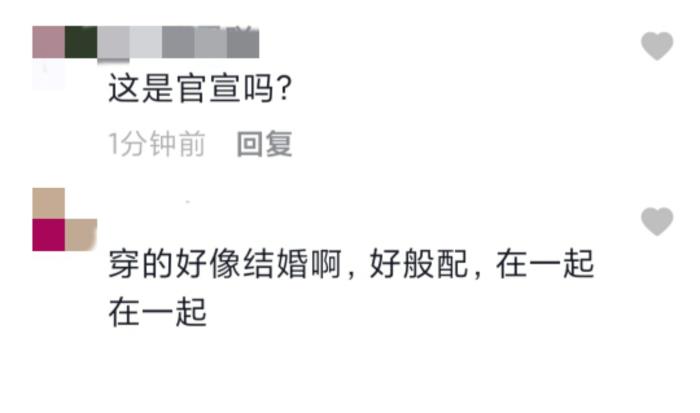 网友看了视频后,纷纷猜测他们是不是真的在一起了,认为这个视频是在官宣恋情。也有人觉得两人衣着打扮像是要结婚一样,看上去特别般配。