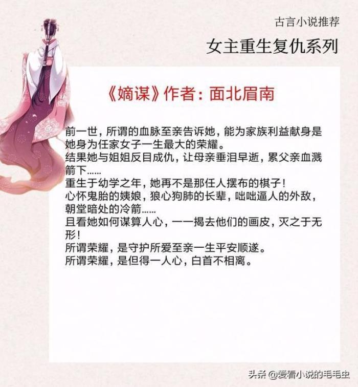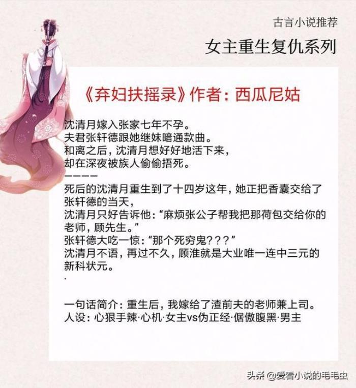 大家好,我是毛毛虫,今天给大家推荐5本女主重生复仇古言:女主狠辣无情,一朝重生势要扭转乾坤!