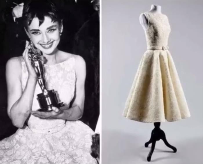 赫本穿着这件礼服,走上奥斯卡领奖台,接过了奖杯。
