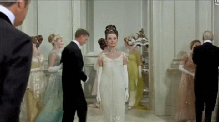 剧中,赫本高雅的举止,清澈的眼神,征服了所有观众。