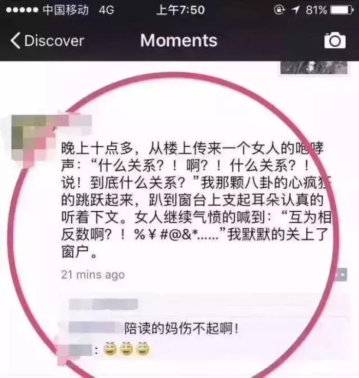 在网上看到一个陪读妈妈的状态:什么关系?!啊?!什么关系?!到底什么关系?