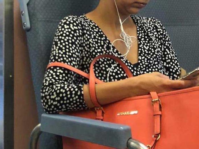 地铁上,一个区别于其他座位的座套。