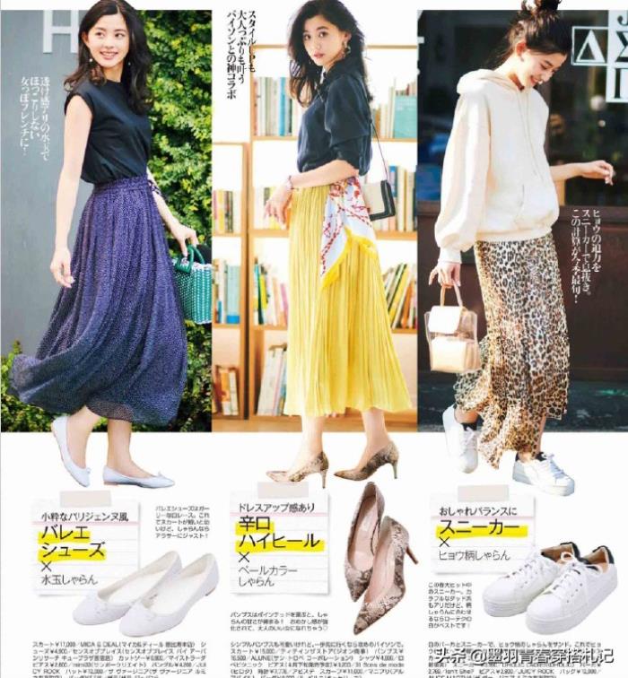 ▲经典的万能黑色,怎么穿都不会过时,黑色衬衣搭配黄色百褶半身裙,脚踩一双豹纹尖头高跟鞋,豹纹元素本身就给人一种很女人味的感觉,搭配斜跨的小方包,淡淡的优雅精致气息,非常漂亮。优雅范的穿搭也不一定要穿高跟鞋,一条黑色上衣搭配紫色碎花半身裙,再搭配一双白色尖头平底鞋,舒适又简约,为了让look看起来不那么素,我们可以搭配一些耳饰,这样看起来更精致了。