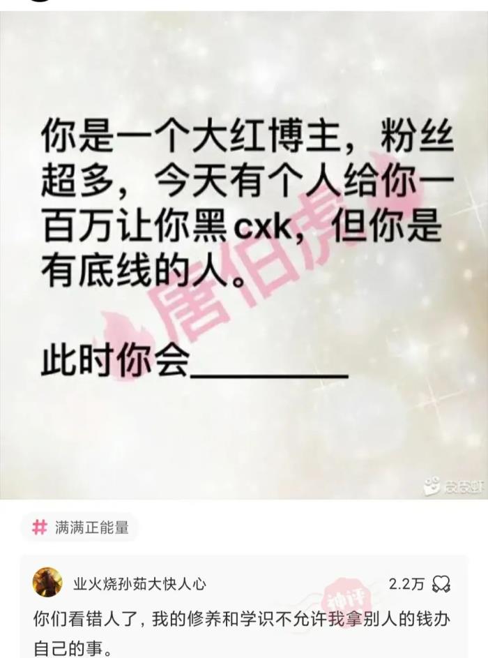 不是什么钱我都接的,我是一个有底线的人,首先你得知道我的底线是啥,再谈啥啥啊!