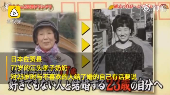时年23岁的她,按照父母的意愿嫁给了一个她并不喜欢的男人,如今五十多年过去了,在一档综艺节目中,77岁的江头孝子奶奶,面对镜头,对着23岁的自己有话要说。