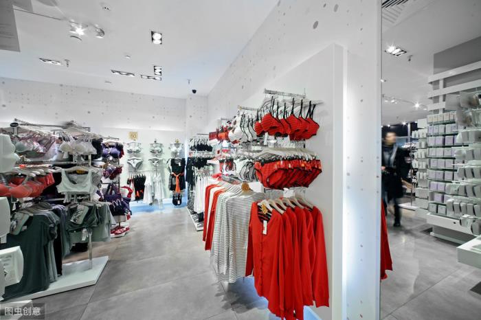 比如内衣店一般是粉色系装修,挂在门口的全是女式睡衣和用品。