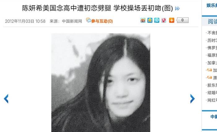 由于家境优越,高中,陈妍希就被送到加州私立西南中学读书。