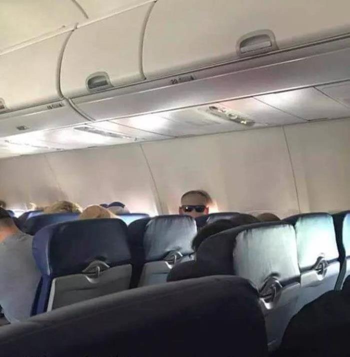 一个变态长时间盯着这边?其实是那个人把墨镜戴在后脑勺