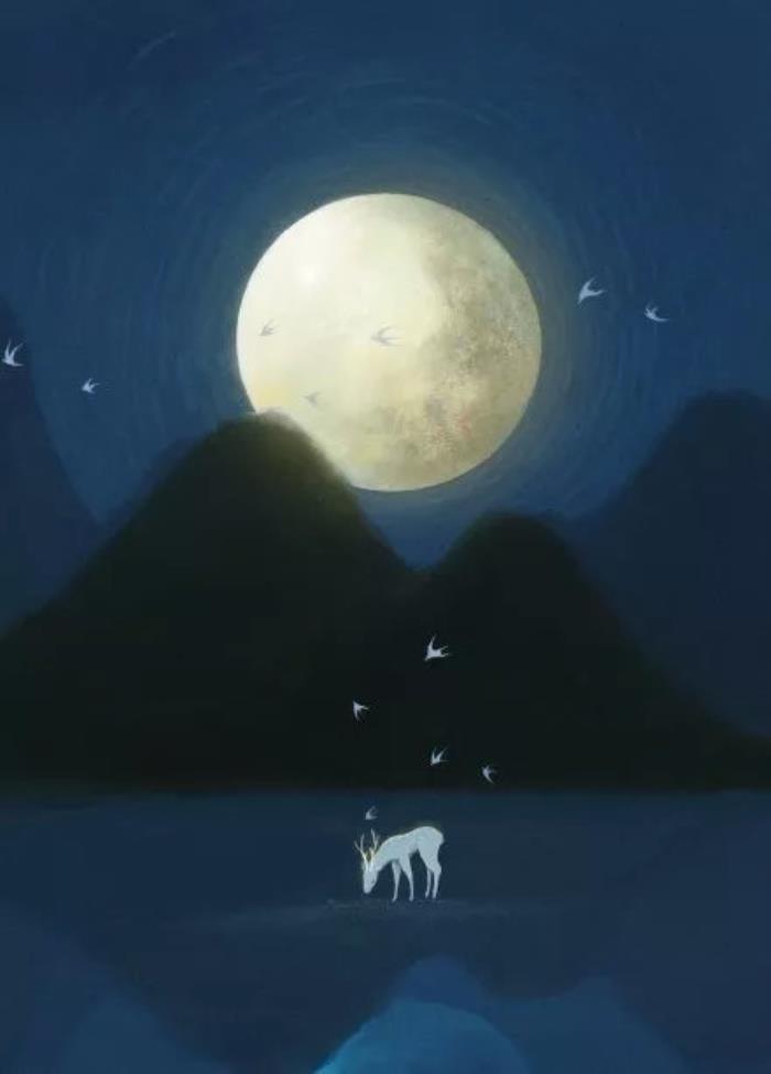 爸爸会抱起我,让我从月亮里看那个偷吃了长生不老药而飞入月宫的嫦娥,可我那双朦胧的泪眼看到的只是一团白花花的东西。月光和我的泪花融合在一起了。