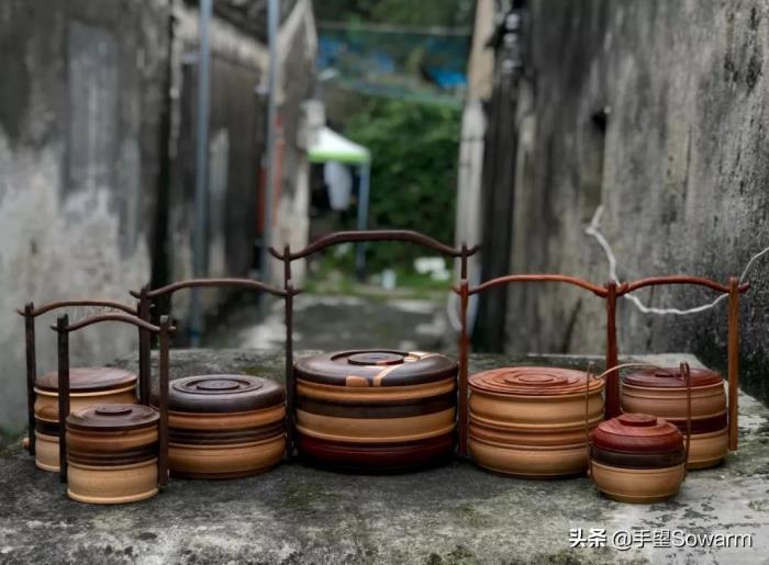 而后从花盆,做到一些极具美感的小汤勺盘子,他甚至还在工作室中开过一段时间的课程。前两年开始买来车床制作更“进阶”的玩意,他做的一系列潮汕特色“春盛”也受到了很多年轻人的喜爱。