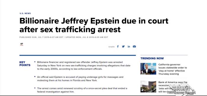 大概就是警方怀疑他不但涉嫌性侵、性虐待和恋童,同时还长期给美国头部政商人士安排性交易,其中还涉及多名未成年女性,再加上Epstein自己经常打着维密星探的旗号招摇过市,且他曾被指控在韦克斯纳的住宅内性侵受害人,这就让大家继续猜测韦克斯纳或维密模特有没有涉及这些丑闻,而韦克斯纳那边赶紧发表言论和Epstein切割,又根据《纽约时报》报道和Newsnight采访、同时被爆出和Epstein有交往的还有现总统川普、前总统克林顿、英国安德鲁王子等等,当然他们后来都发表声明和Epstein切割