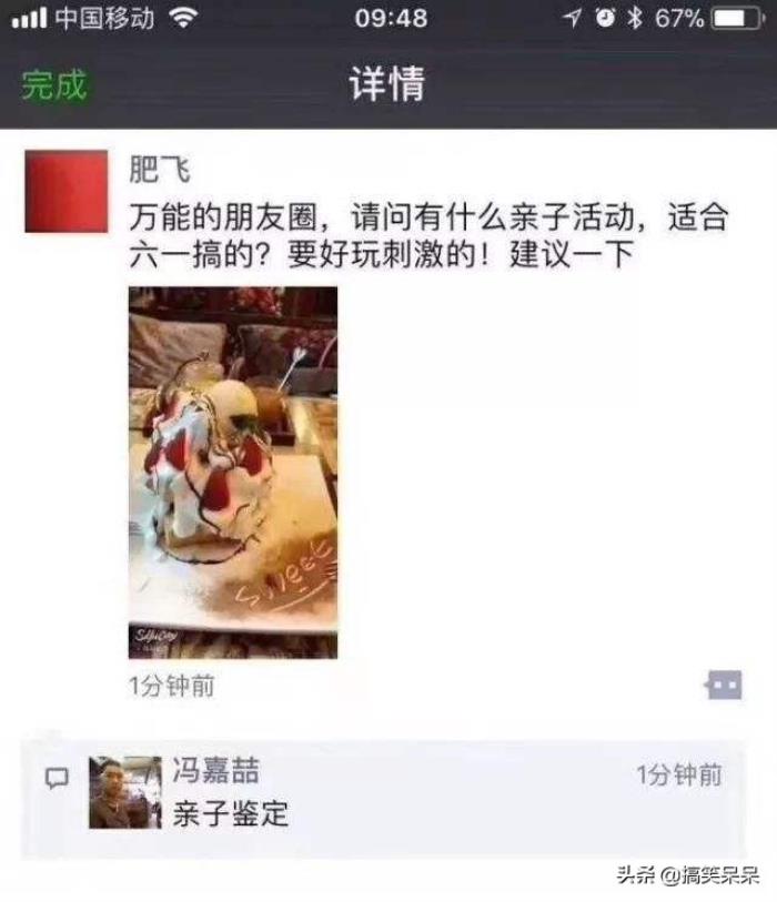 令人笑出腹肌的朋友圈截图:六一的亲子活动是亲子鉴定