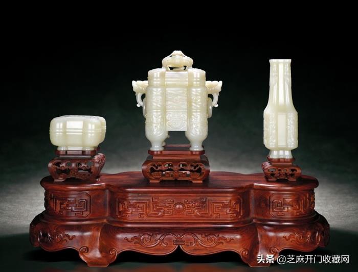 马庆华作品和田籽玉炉瓶(三件套),尺寸:高6.8厘米;高21厘米;高21厘米,成交价: RMB 34,500,000