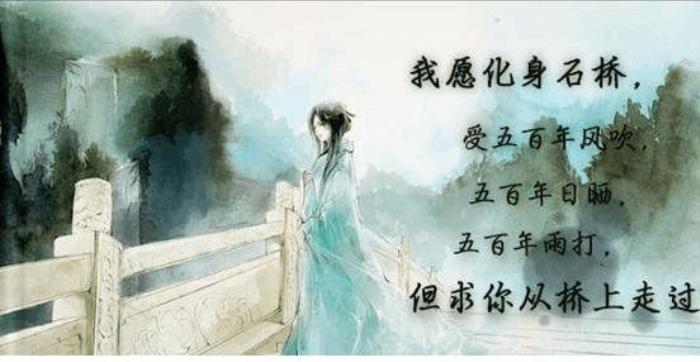 大家知道在古代的时候,人们是相信有轮回的,人有前世,今生和来世。所以会有“一日夫妻,百世姻缘”的说法,意思是今生我们能做一日的夫妻,那是一百世修来的福分。类似的话还有“佛说:前世五百次的回眸,才换来今生的擦肩而过。”这句话出自现代诗人席慕蓉的《回眸》,意思也是说两个人能相遇、相知、相爱非常的不容易。