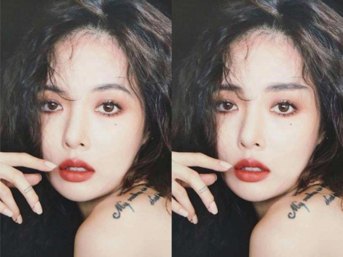 相反图一的话给人感觉就不一样了,整个妆容的话从眉毛到嘴巴,每一处的话都是相当浓了,泫雅的渣女脸真的是嚣张到惊艳,给人的感觉就是"被靠近我,都离我远点"身材的话也是绝了,性感妩媚,小编的话看这这张脸真的是我!可!已!!!