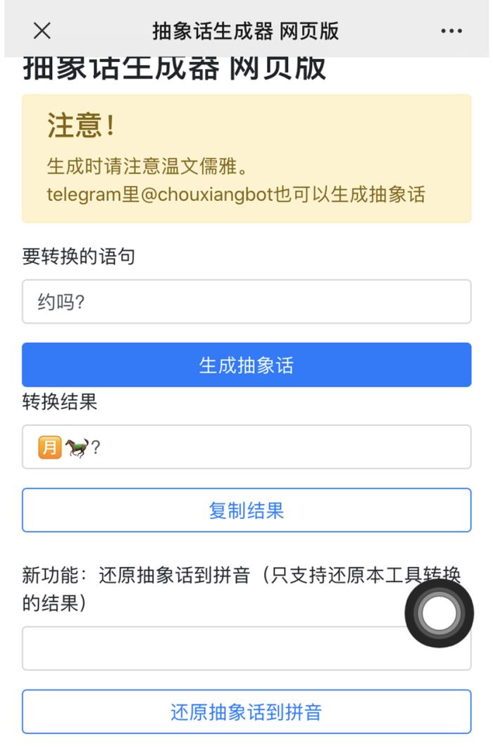 由于篇幅有限,生成器很多,小雷都打包好了,现在介绍最后一款,叫做"抽象话生成器",小雷之前一直对nmsl等等这些暗语不能理解,但碰上这个生成器,基本上什么话都能拟物来形容,和朋友聊天简直就像在用"表情语",有点新潮有点非!